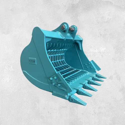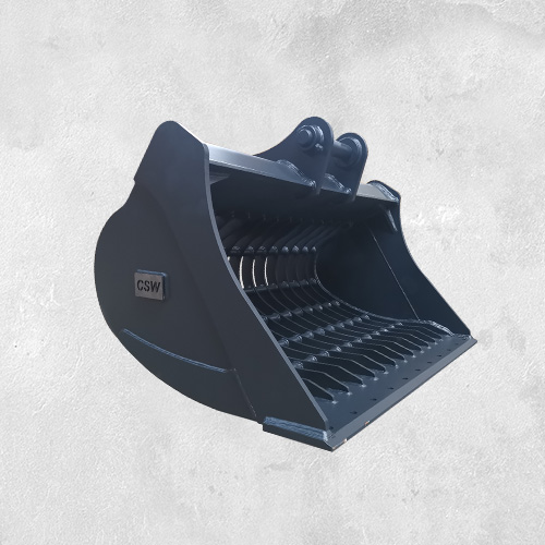 Skeleton buckets, sieve buckets, riddle buckets are widely used for sifting rocks, soil, rubble, etc. CSW machinery designs and manufactures skeleton buckets / sifting buckets to suit machine from 3 ton to 75 ton excavators. The sifting size is customized according to your requirements. Use BOE (Bolt on edge) or bucket tips as options.