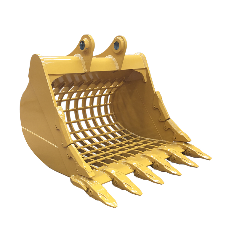 A modified bucket with its main loading part separated by gaps to allow larger chunks of substance to fall through, avoiding wasting time moving unnecessary materials away. It’s also known as screening buckets, shaker buckets, sifting buckets, and sort buckets (or sorting buckets).